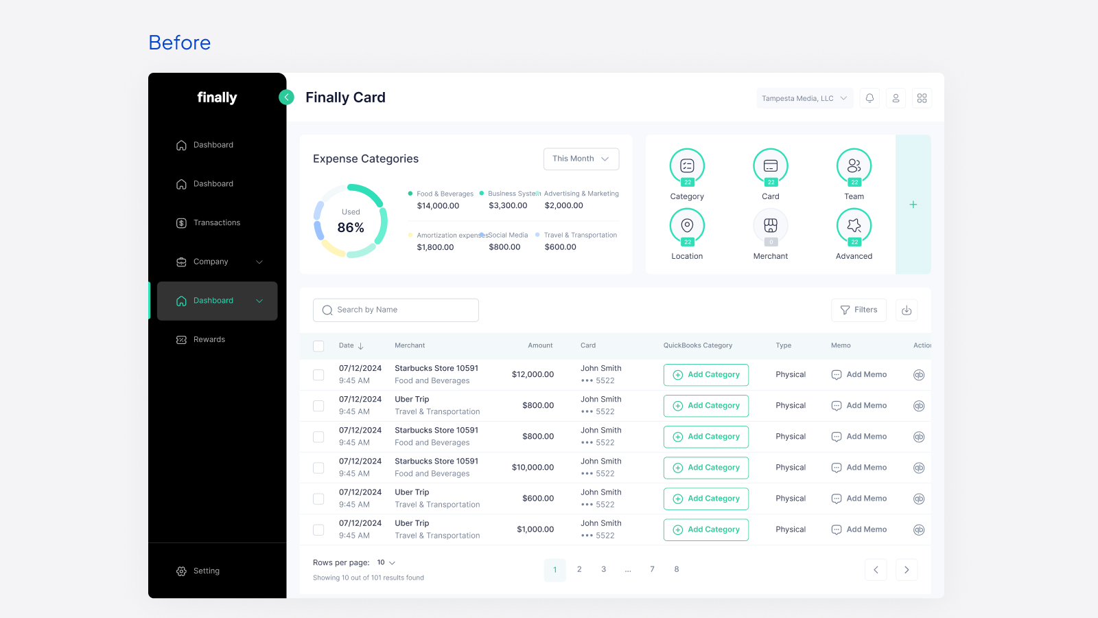 Finally is a B2B fintech platform built for small business banking. The product team needed to ship fast - multiple products in parallel - without accumulating visual debt or duplicating design effort across every new surface.
